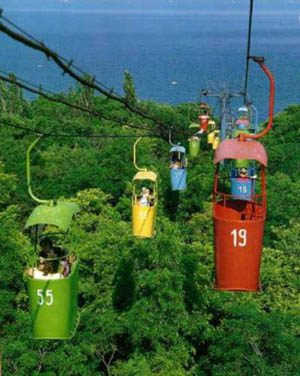 The gondola ride up the hill near the beach Lanzheron. Odessa is built upon a 30 meter (100 ft) plateau that overlooks the Black Sea, and as such, all Odessites are good climbers (except those who ride this gondola). Enjoy the magnificent Scenic Overviews of Odessa. |